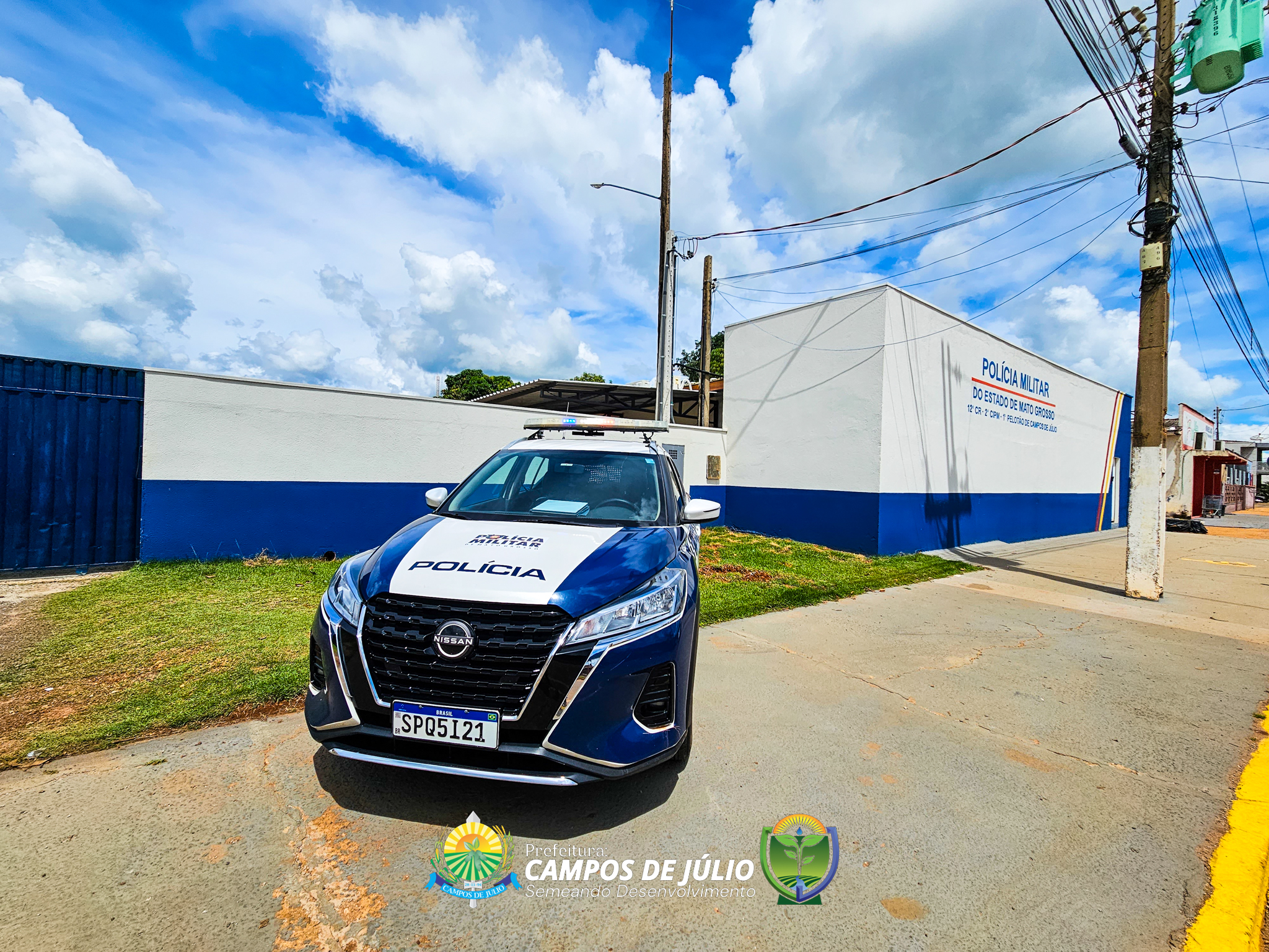 A Prefeitura de Campos de Júlio concluiu a obra de reforma e ampliação do 1º Pelotão da Polícia Militar, um investimento de R$ 297.758,47, realizado com recursos próprios do município. A nova estrutura, que conta com 235,52 m² de área construída, recebeu importantes melhorias, incluindo sala de monitoramento, área administrativa, dormitórios masculino e feminino, banheiros, depósito e sala de auxílio, além de revitalização da área externa.